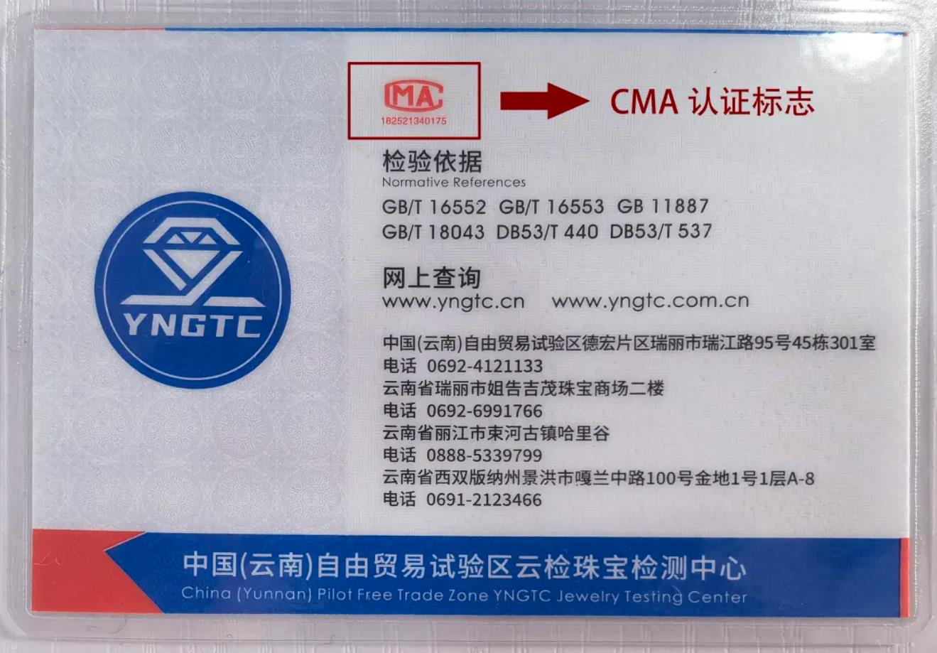 其中,CMA认证是国家根据《计量法》对鉴定机构的计量认证,是所有珠宝鉴定证书中必须具备的,可以向国家或者当地市场监管部门查询真伪。